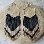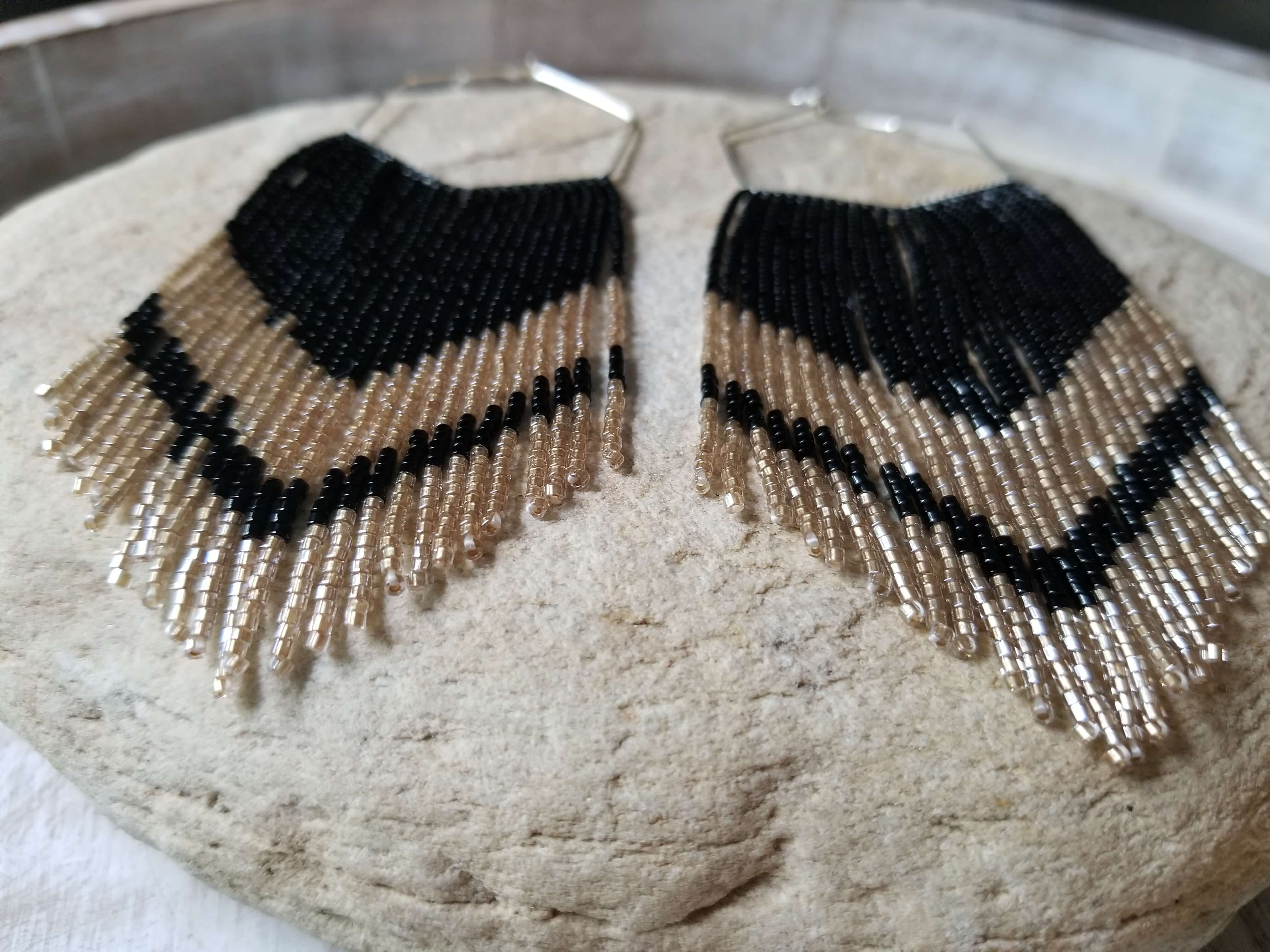 Native American Handmade Copper and Japanese Glass Delica Beaded Fringe Shoulder Duster Statement Earrings are individually and carefully handcrafted. The lightweight fringe is long enough to dust the shoulders beautifully without the worry of weighing on the earlobe due to the lightweight nature of the glass delica beads.
